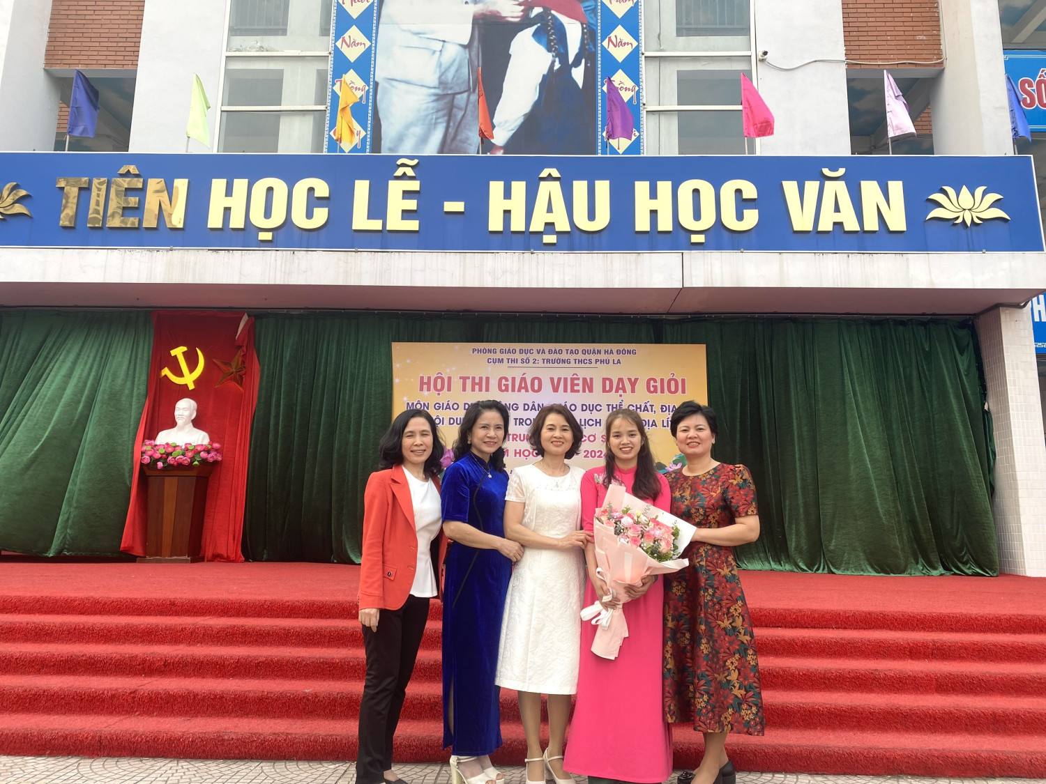 Năm học 2023 – 2024, trường THCS Lê Hồng Phong có 2 cô giáo tham dự hội thi giáo viên dạy giỏi quận Hà Đông: cô Nguyễn Phương Dung dự thi môn Giáo dục công dân và cô giáo Nguyễn Thị Hải Yến dự thi nội dung Địa lí trong môn Lịch sử và địa lí. Các cô giáo cùng với các tổ chuyên môn của nhà trường đã xây dựng những bài giảng rất tâm huyết để mang đến hội thi. Dưới đây là một số hình ảnh của các cô giáo đã tham gia hội thi vừa qua:Cô Nguyễn Thị Hải Yến sau khi hoàn thành bài thi môn LS&ĐLCô Nguyễn Phương Dung chụp ảnh lưu niệm cùng tập thể GV sau khi hoàn thành bài thi GDCD