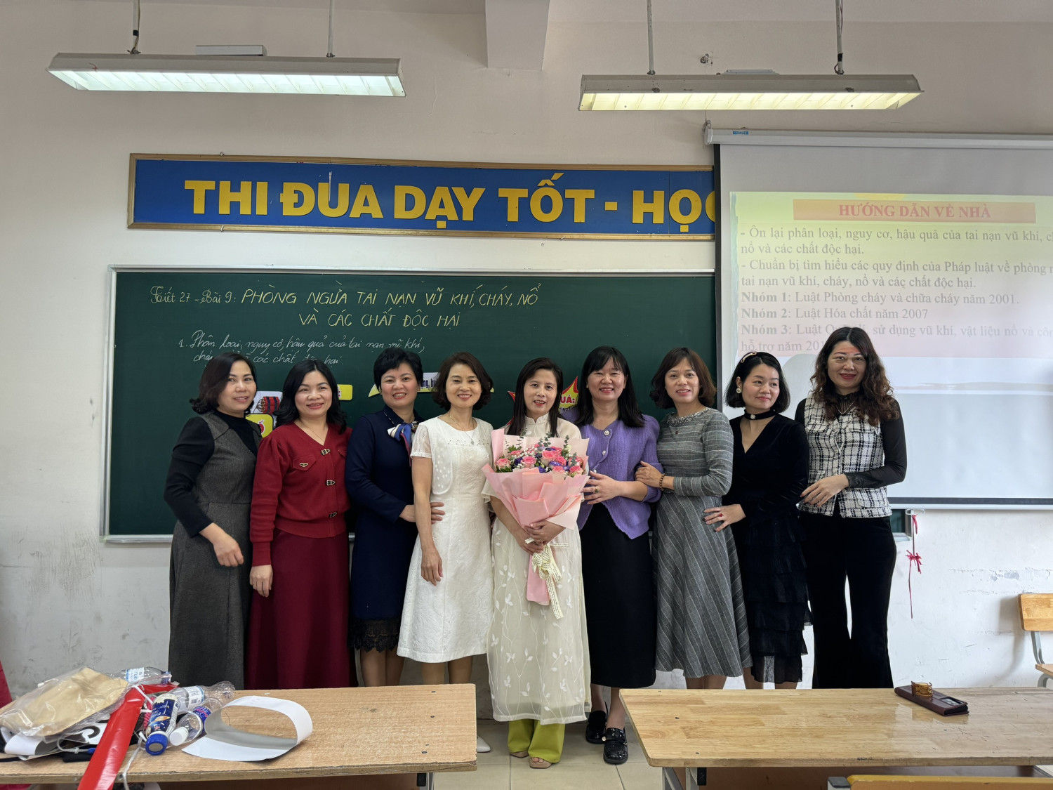BGH, giáo viên chụp ảnh lưu niệm cùng lãnh đạo PGD